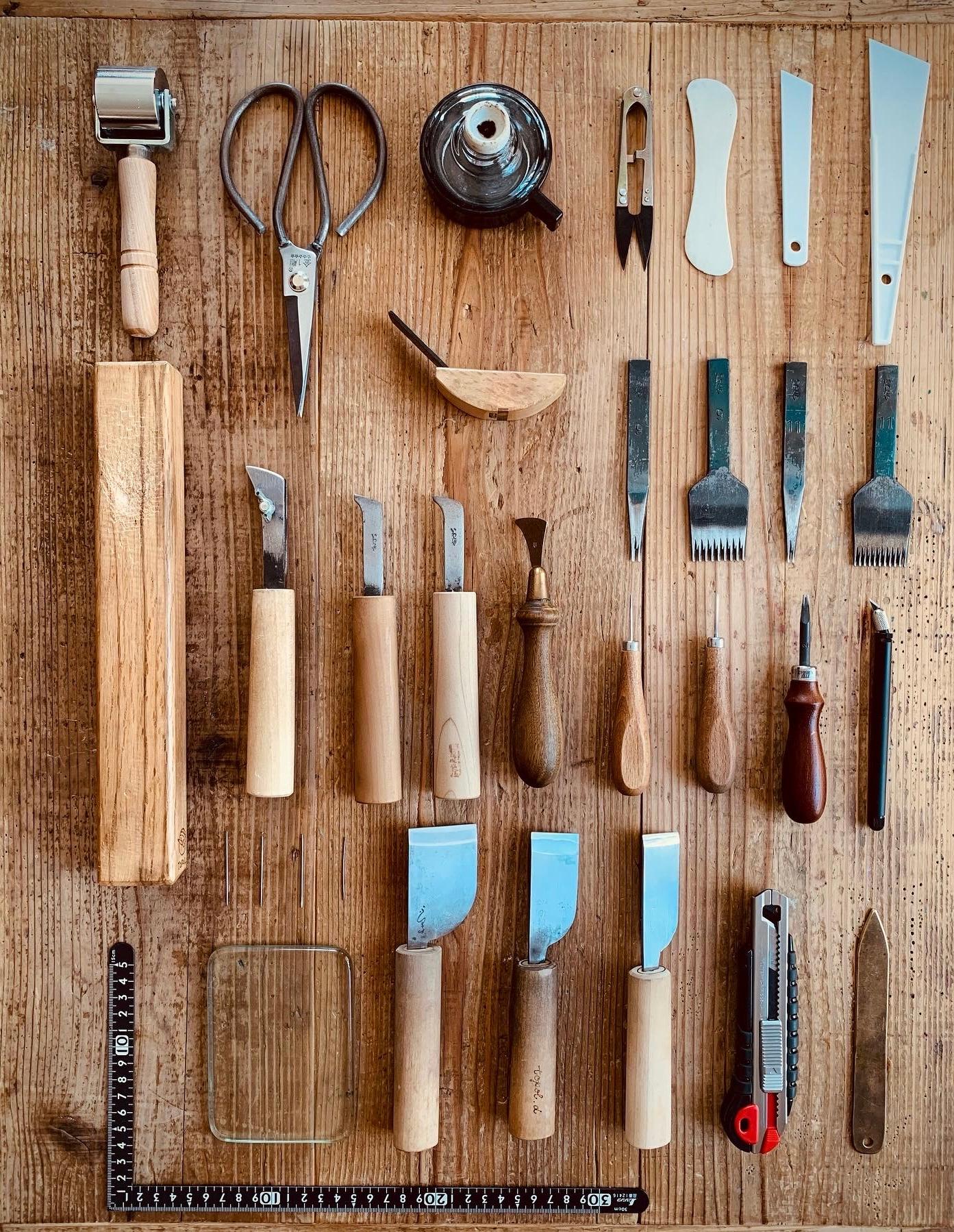 デザイン一つ、裁断一切り、目打ち一打ち、手縫い一針、それぞれに意思を持った丁寧な創作を心掛けています。